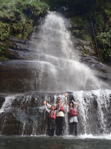 父母が由布島散策をしているあいだに、4兄弟はキャニオニングへ!