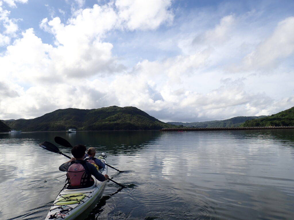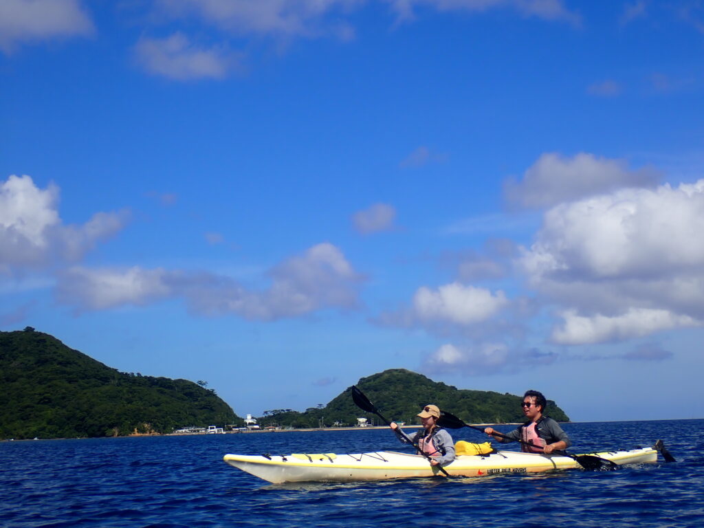 イダの浜へ向かう道中は追い風。時間もあったのでのんびりおしゃべりしながらシーカヤック。