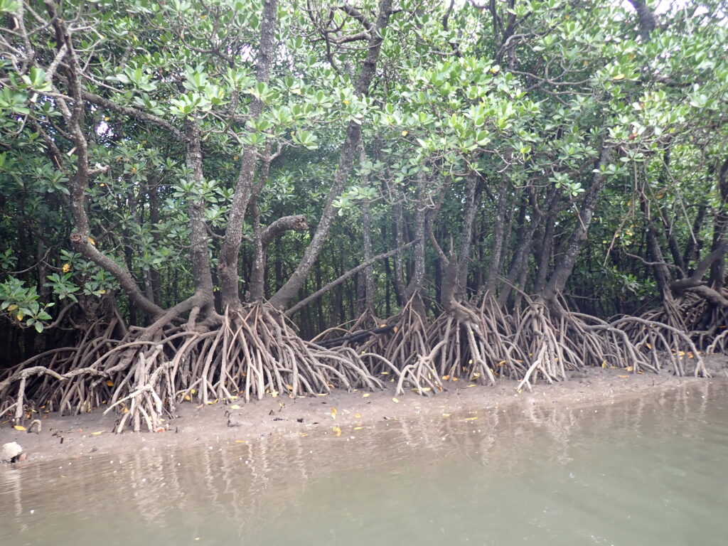 水落まで後少し。潮が引いているのでヤエヤマヒルギさんの支柱根がくっきり。