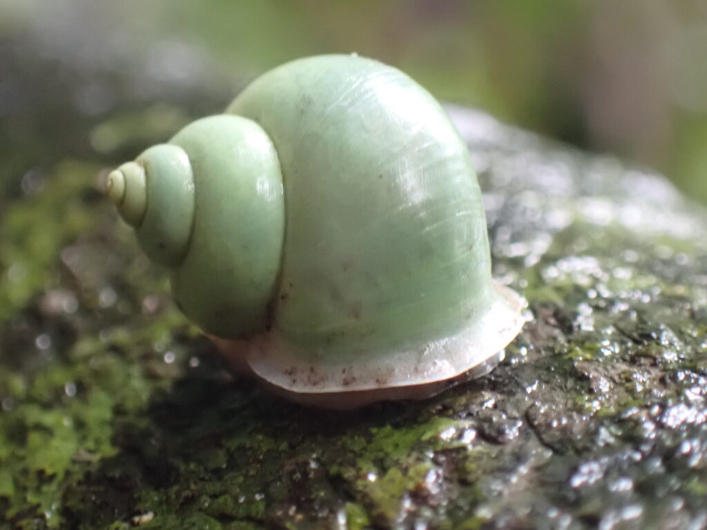 アオミオカタニシ。殻は半透明でっせ。