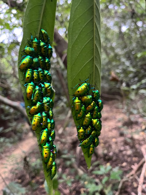 山では葉っぱの裏にキンカメムシが大集合して暖をとっていました。冬が始まりますね〜
