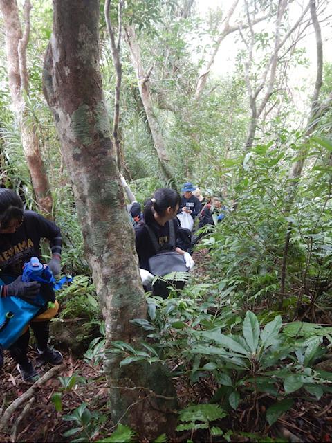カンピレーの滝付近まで約30分歩いたところから、テドウ山の登山道に入ります。
