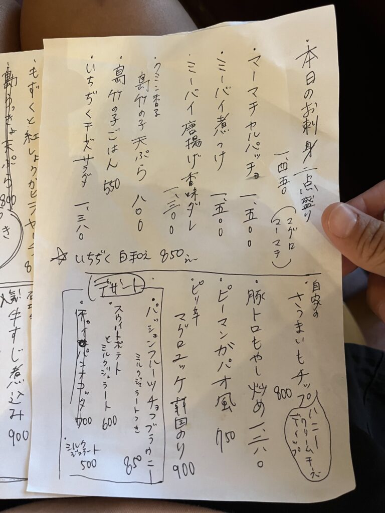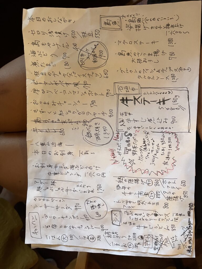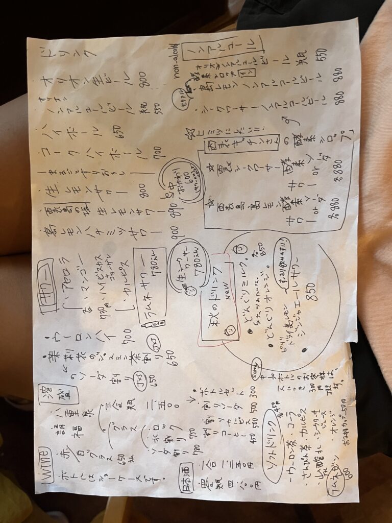 メニューはこんな感じです。手書きのメニューが可愛い。