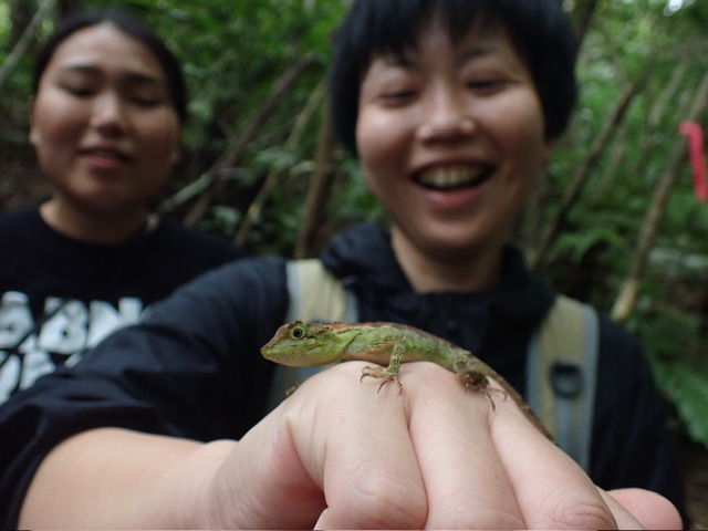 こちらのお姉さんはなんと初滝がマヤグスクとのこと。キノボリトカゲにも新鮮な笑顔(^^)