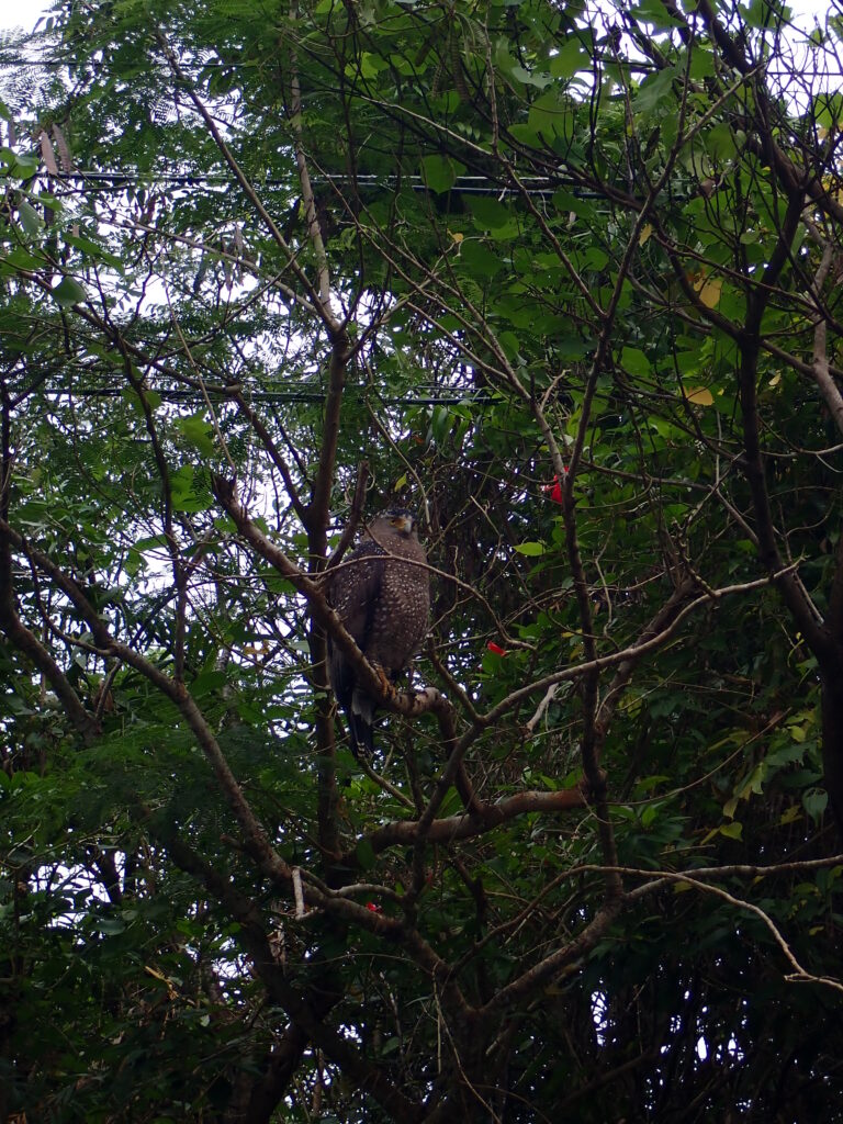 お迎えから移動中、これでもかというくらいカンムリワシが見られました。最後はすぐそばの枝に!天気が良くてカンムリワシも気持ち良いんでしょうね〜