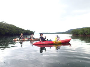 行きのカヤックもベタ凪で絶景です。