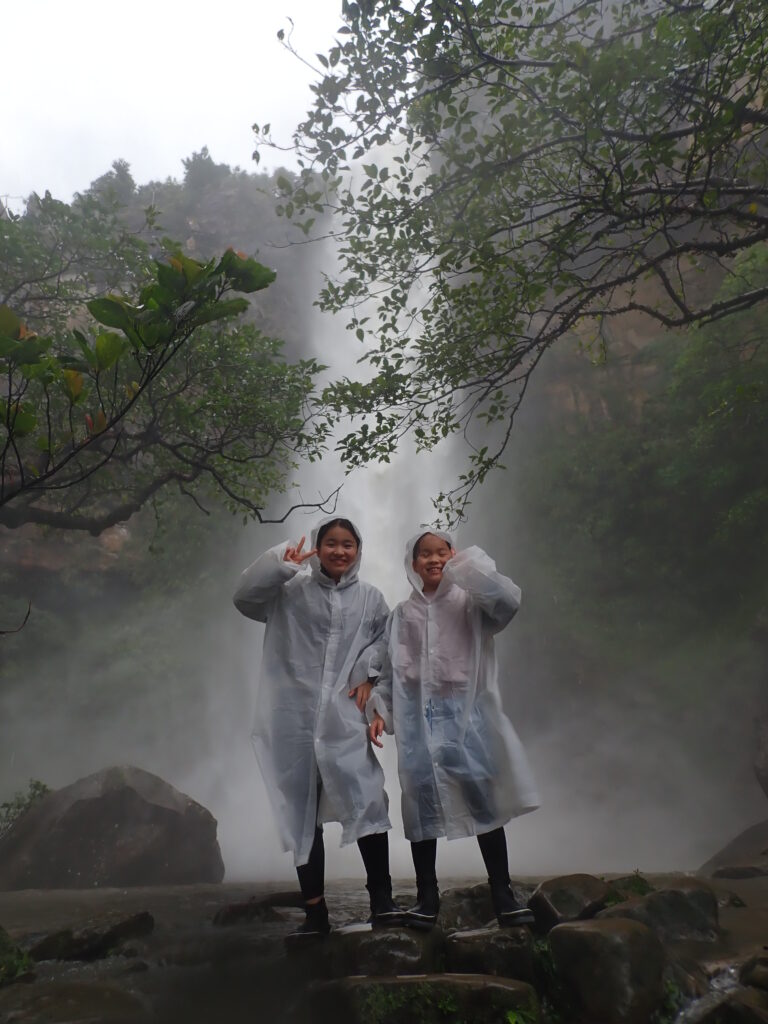 仲良し3姉妹も一生忘れない経験になったことでしょう。(滝からの風が強すぎて妹ちゃんは飛んじゃうのでパパママと岩陰にいます笑)