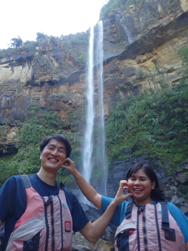 そんなこんなで滝上に到着!スタート時間をずらしたおかげで誰もいません!なのでこんなポーズをしても恥ずかしくない〜(*^_^*)笑
