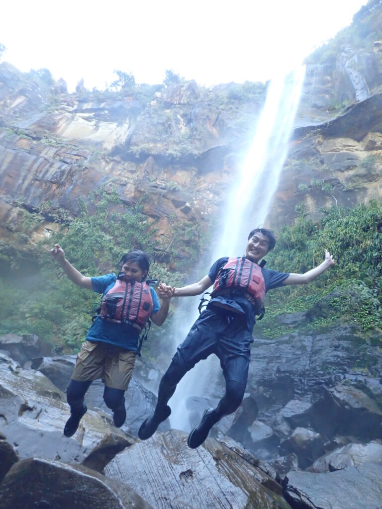 最後は仲良く滝壺ダイブ!